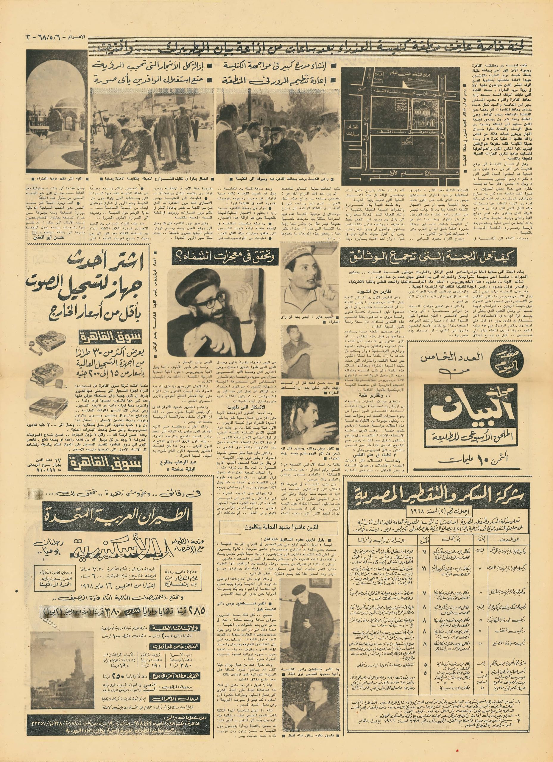 قامت لجنة من محافظة القاهرة ومديرية الأمن ظهر أمس بمعاينة دقيقة لمنطقة كنيسة مريم العذراء بالزيتون تمهيدا لاعادة تخطيطها وتنظيمها لتسع ألوف البشر الذين يتوافدون عليها أملا في رؤية مريم العذراء. ضمت اللجنة التي عاينت الموقف السيد سعد زايد محافظ القاهرة واللواء محمود السباعي مدير أمن العاصمة والسيد كمال حميده مساعد محافظ القاهرة، كان معهما مدير التخطيط بالمحافظة ومدير المرافق ومدير النظافة وعدد كبير من مهندسي البلدية الذين سبقهم الي المنطقة وعدد من عمال الرصف والنظافة ظلوا طوال النهار يزيحون كميات هائلة من الطين والماء خلفتها “حنفية كبيرة” في وسط حديقة الكنيسة ظلت مفتوحة طوال الليل ليشرب منها الناس الذين تزاحموا حولها فانسابت مياهها لتغرق الحارات الضيقة المحيطة بالكنيسة.